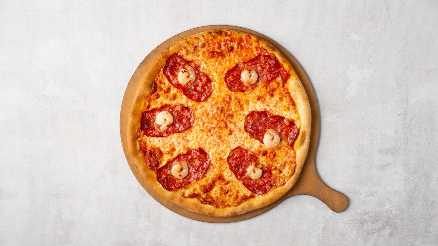 mozzarella, salami piccante, pomidorki, rukola